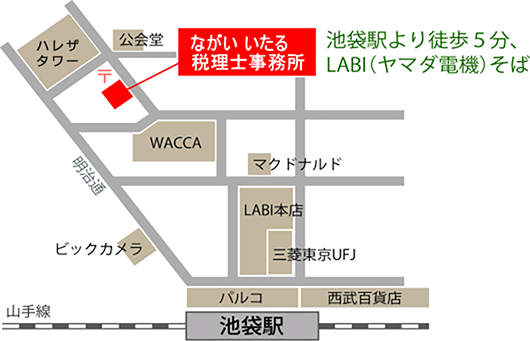 JR池袋駅東口から徒歩3分、ヤマダ電機から1分、
