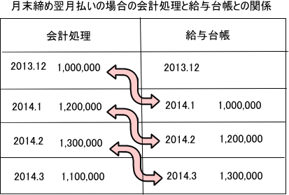 次に問題になるのが、給与の会計処理と、給与台帳との関係です。